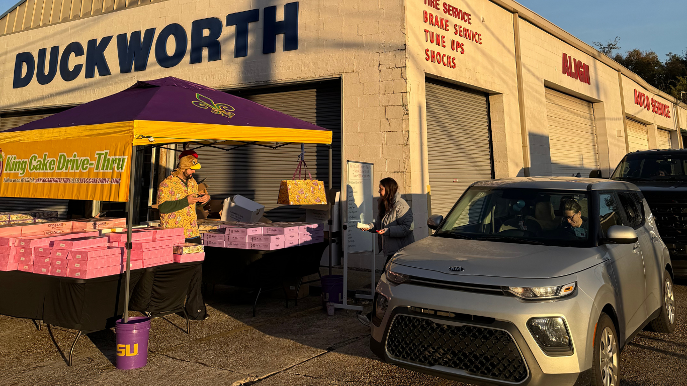 “We literally set up on the side of the road to bring you king cakes in a silly makeshift drive-thru fashion. So why not?”